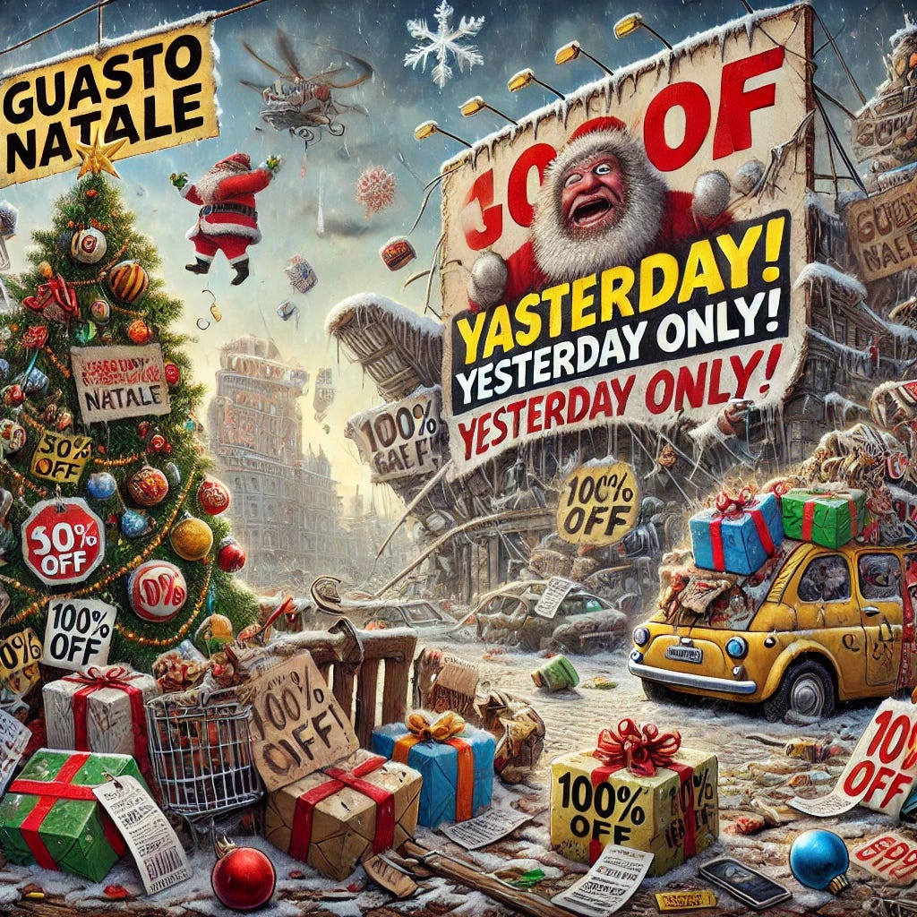 Infine vorrei fare un esperimento insieme a voi: dato che in giro sto vedendo spot da fare venire i brividi, vi andrebbe di segnalarmi le peggiori pubblicità a tema natalizio che vedete? Basta rispondere a questa mail e provvederò a inserirle in una classifica per assegnare a Gennaio l’ambitissimo premio “Guasto Natale”. Sperando che non mi accada quello di cui scrivo poco sotto.
